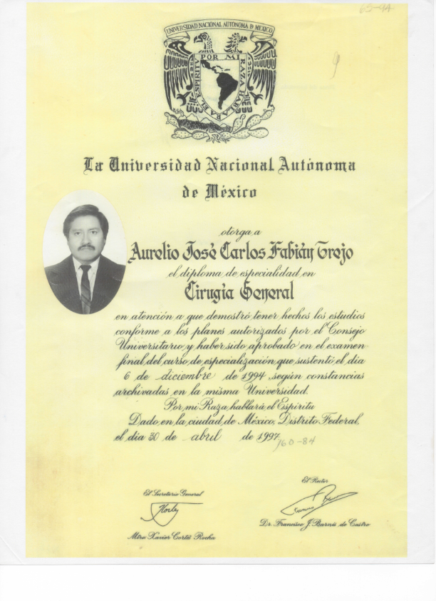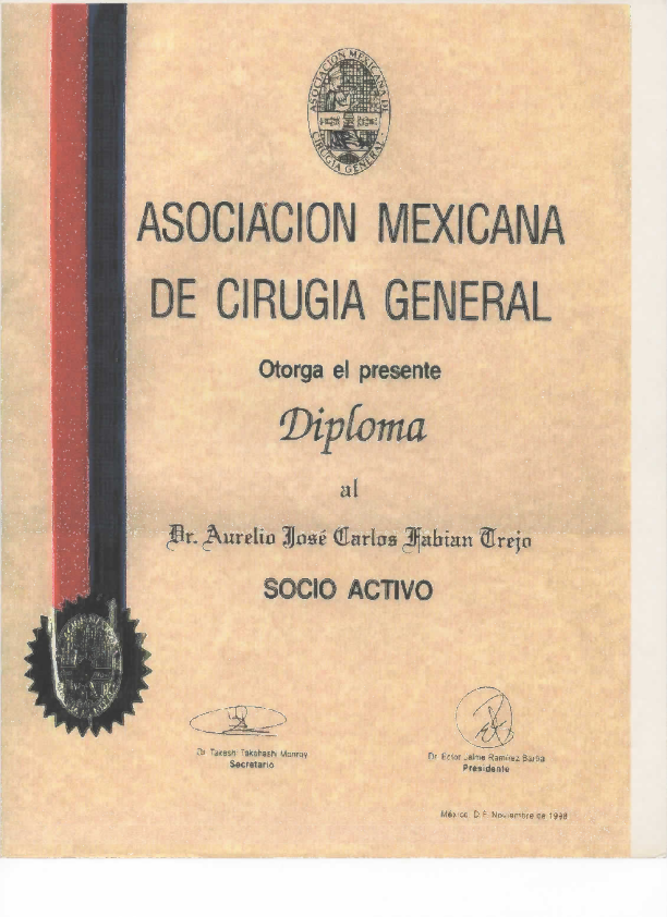 Diploma de Socio Fundador del Colegio de Posgraduados en Cirugía General A.C.